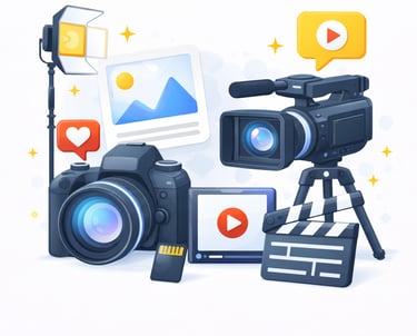 Creamos contenido visual que realza las marcas, atrae la atención y facilita las ventas. Desde la concepción y la grabación hasta la edición y el procesamiento final, gestionamos todo el proceso de producción de fotos y videos para empresas, publicidad y redes sociales.